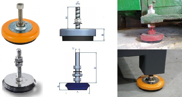 Виброопоры предназначены для пассивной и активной виброизоляции агрегатов средних и крупных размеров с жесткими станинами, а так же другого оборудования, при наличии стационарных и случайных колебаний. Виброопоры используются в случаях, когда легкие или тяжелые механизмы не крепятся к поверхности.